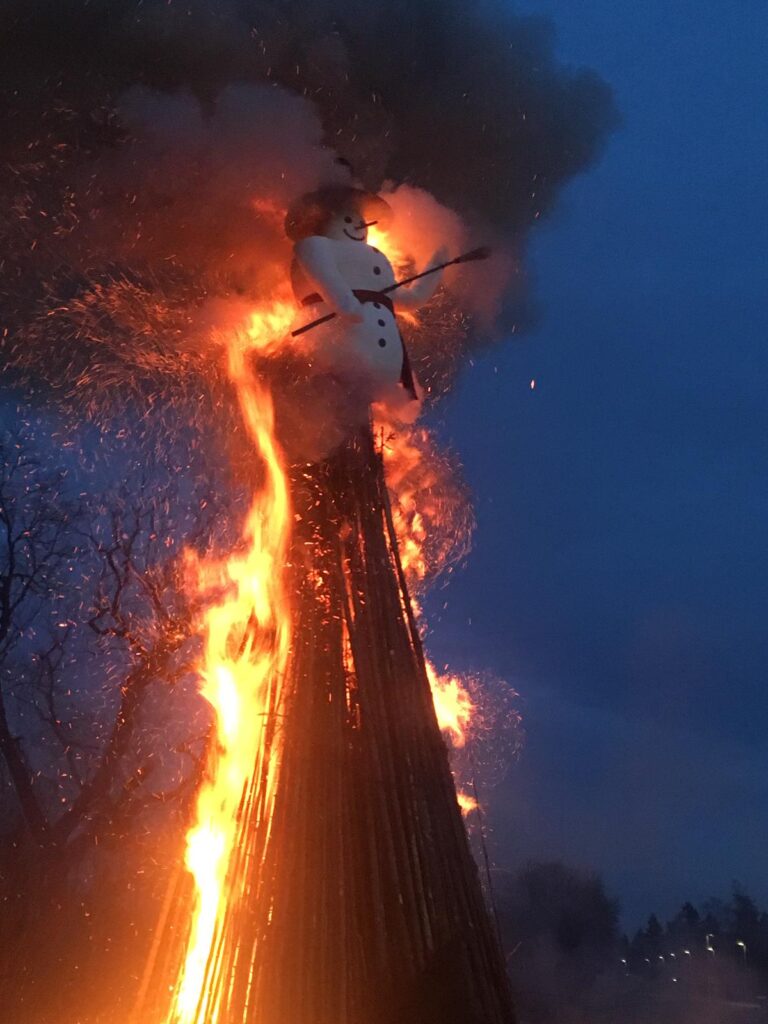 Später verlagert sich das bunte Treiben auf die Gotthardwiese, wo pünktlich um 18.30 Uhr das Fasnachtsfeuer angezündet wird.